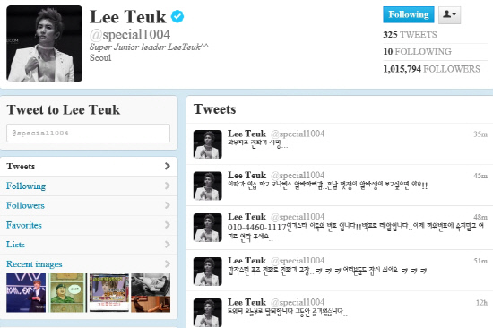 이특은 1일 자신의 트위터에 "트위터 오늘부로 탈퇴합니다. 그동안 즐거웠습니다"란 글을 올렸다. 하지만 약 반나절이 지난 뒤엔 "010-4460-1117 인기스타 이특의 번호 입니다. 백프로 레알입니다. 이제 허위 번호에 속지말고 여기로 연락 주세요"라고 밝혔다. 이어 "과부하로 전화기 사망"이라며 아쉬워했다.