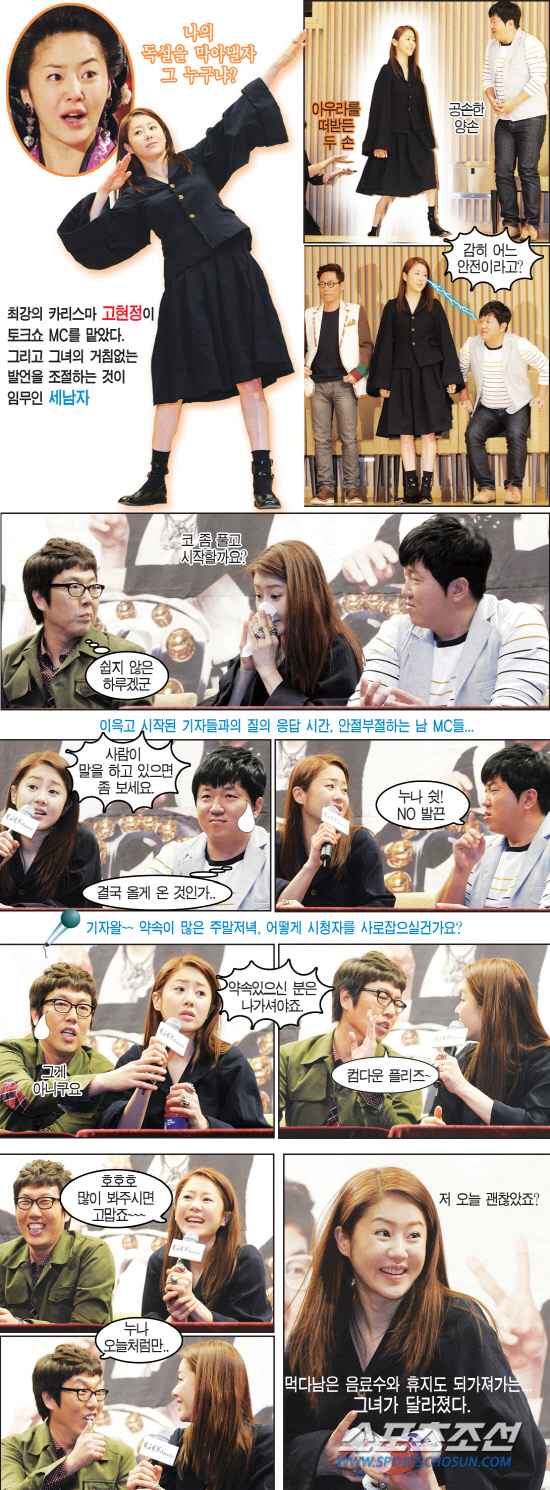 평소 거침없는 입담으로 유명한 고현정이 자신의 이름을 딴 '고쇼'라는 토크쇼로 돌아왔다. 지루할 새 없이 내뱉는 그녀의 직설화법이 프로그램에 대한 관심을 증폭시키는 가운데 지난달 28일 제작발표회가 열렸다. 고현정은 이 자리에서 "같이 진행하는 윤종신, 정형돈, 김영철이 없었다면 수위 조절이 불가능했을 것이다. 하고 싶은 말을 다 했다가는 방송불가가 될지도 모른다"고 첫 녹화의 소감을 밝혔다.