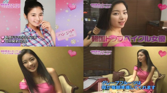 배우 한지우가 일본의 방송 프로그램을 통해 한국을 대표하는 베이글녀로 소개됐다.