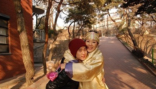 사진을 본 네티즌들은 "엄마가 초특급 미인이셨구나", "역시 연예인 유전자는 따로 있어", "엄마가 더 연예인 같다", "엄마 얼굴크기 닮았나보다. 대박이야","드라마에 나오는 모자지간 같다", "보기만 해도 훈훈하네"등의 반응을 보였다.