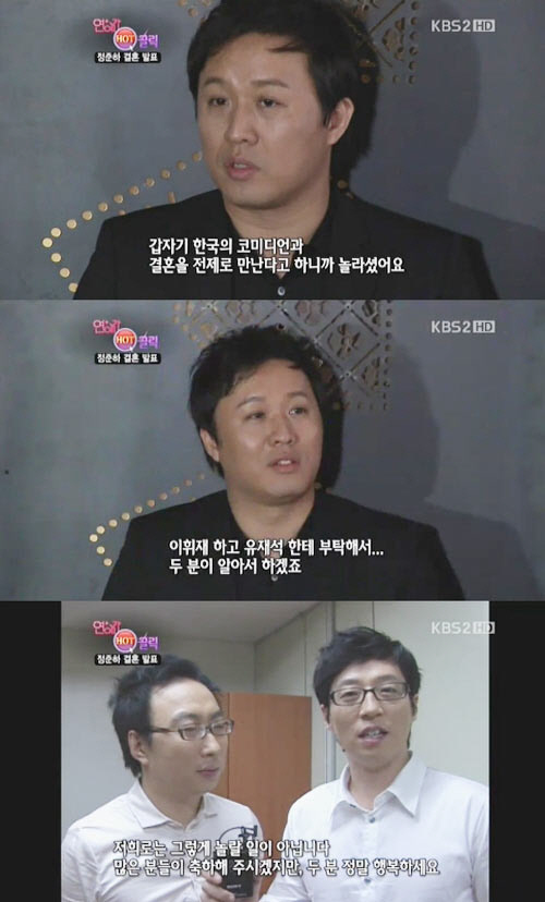 이어 결혼식 사회를 누가 맡을지에 대해 관심이 집중되자 정준하는 "유재석 이휘재에게 사회를 부탁했는데 두 사람이 서로 미루고 있다. 두 분이 알아서 하실거다"라고 전했다.