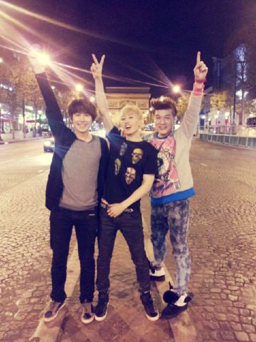슈퍼주니어의 은혁, 신동, 규현이 프랑스 파리에서 기념사진을 남겼다.