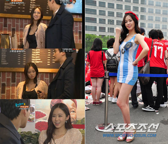 | 오초희가 출연한 '롤러코스터' 화면과 2010년 남아공월드컵 당시 시청에서 아르헨티나 유니폼 패션으로 응원을 하고 있는 모습. <사진=방송화면, 스포츠조선 DB> |