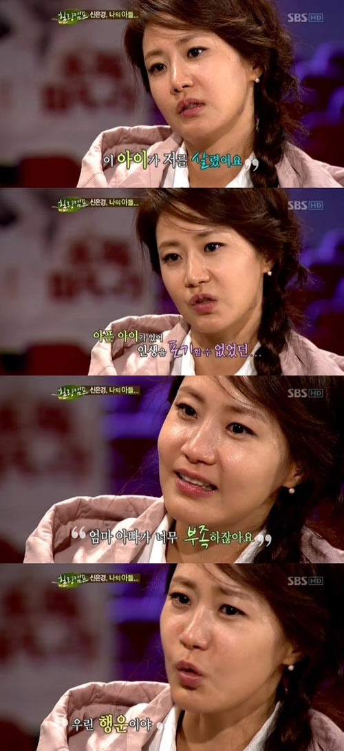 이날 신은경은 아이에 대한 각별한 사랑을 전해 모두를 감동케 했다. 그는 "아이가 저를 살렸다"며 "아이와 시간을 보내면서 전 남편의 연이은 사업실패 등 힘든 상황에도 포기를 하지 못했다. 아이가 절 지켜준 만큼 앞으로 자랑스러운 엄마 아빠가 되야겠다"고 다짐했다.