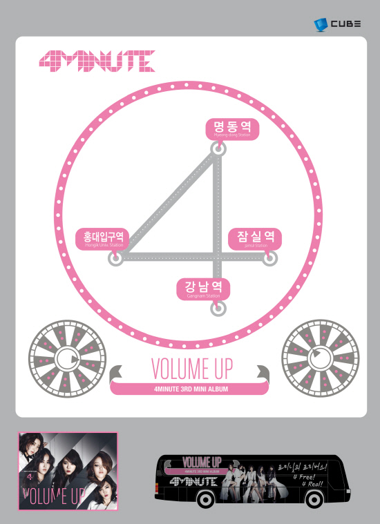 또한 포미닛의 프리버스는 9일 공개된 새 미니음반 '볼륨업'의 카리스마 여신 이미지로 랩핑된 버스로 포미닛 멤버들의 각각의 이미지와 노래, 뮤직비디오 등을 직접 볼 수 있도록 구성했다. 오프라인에서도 새 타이틀곡 '볼륨업'을 오감으로 체험할 수 있도록 했다.