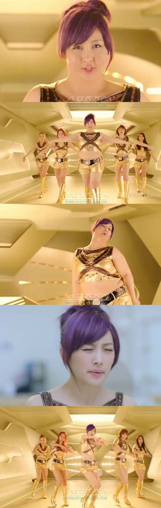 광고는 황금빛 섹시 의상을 입은 다섯 멤버가 신곡 '스피드업'에 맞춰 춤을 추는 것으로 시작한다. 그런데 정 가운데 영화 '미녀는 괴로워'의 주인공을 연상케 하는 거구의 여성이 다름 아닌 니콜. 아무렇게나 군것질을 하다가 자신이 뚱녀로 변한 아찔한 상상을 한 것이다. 이후 니콜은 해당 제품을 먹고 다시 늘씬한 몸매의 자신으로 돌아와 춤을 추는 것으로 광고는 마무리된다.