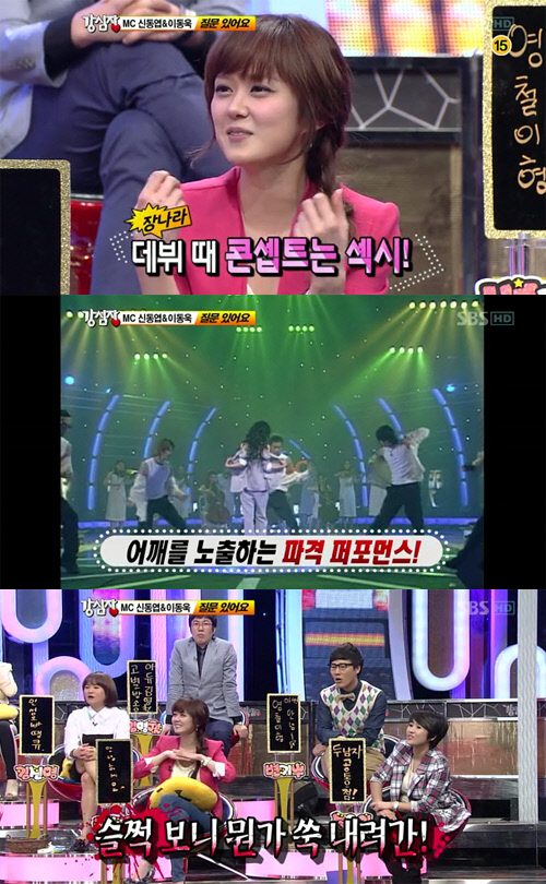 이에 장나라는 "나는 내가 섹시한 것 같다"며 수줍게 말문을 열었다. 그는 "처음 데뷔 당시에는 나도 섹시한 콘셉트였다. 당시에 등도 다 파인 블라우스를 입고 마지막에는 어깨를 노출하는 파격 퍼포먼스를 선보였다"고 말해 눈길을 끌었다.