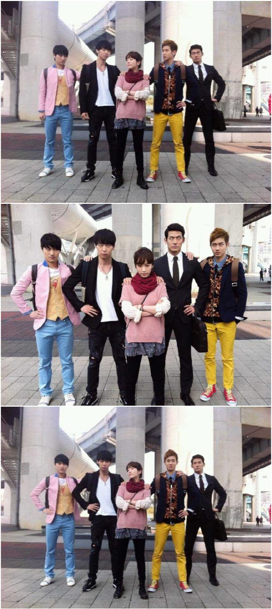 사진 속에서 이들은 마치 지구를 방위하기 위해 나타난 인물들처럼 어깨에 손을 올린 채 늠름한 포즈를 취하고 있다. 한지민을 제외한 남자 배우들은 흰자위만 드러낸 공포(?)의 눈빛을 선보여 웃음을 자아내고 있다.