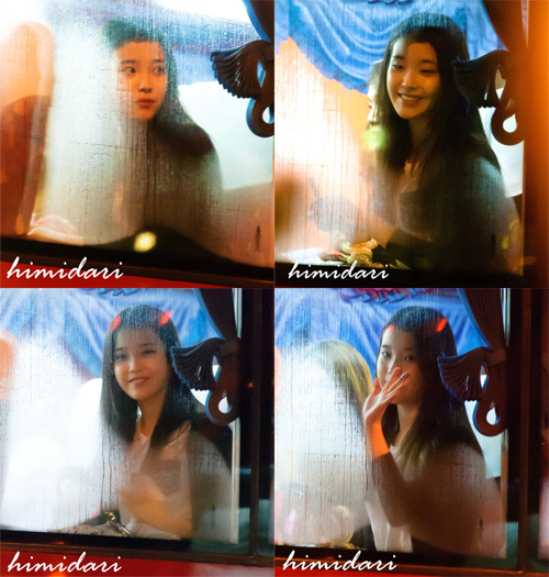 사진 속 아이유는 버스 창가에 앉아 팬들을 향해 환한 미소를 지으며 손을 흔들어 인사하고 있다. 빗물이 흐르는 창가와 조명에 비친 아이유의 청순한 미모가 조화를 이루며 마치 화보 속 한 장면을 보는 듯 아련한 분위기를 자아낸다.