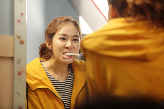 '인현왕후의 남자'에서17세기 조선시대에서 현대로 날아온 선비 김붕도 역의 지현우와 시공 초월 판타지 로맨스를 만들게 될 유인나는 극 중 전 남자친구인 한류스타 한동민 (김진우)과도 러브라인을 형성하며 의도치 않게 삼각관계를 이룬다. 사진을 본 네티즌들은 "차인표 분노의 양치질 패러디같다" "지현우랑 애정싸움한 뒤 장면인가?" "입에 치약거품 문 모습도 귀요미~"등의 반응을 보였다.