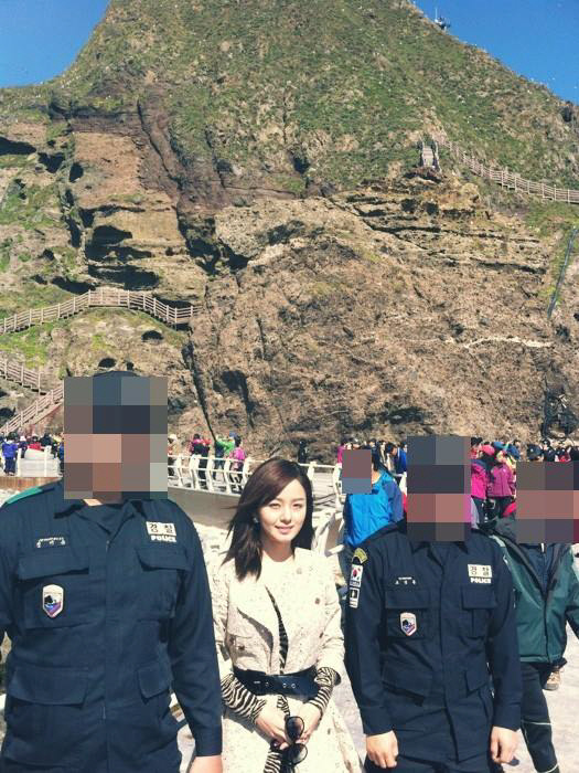 그는 '대한민국 동쪽 땅끝'이라고 적힌 바위 뒤에서 포즈를 취하는가 하면 독도 수비대, 독도개 지킴이와 함께 촬영한 사진을 공개하기도 했다.