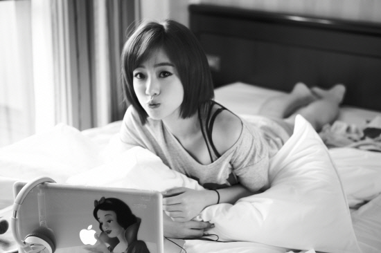 티아라가 스위스에서 촬영한 침대 위의 여신 사진을 공개했다.