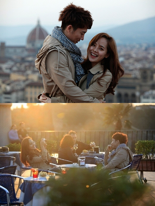 이탈리아 피렌체의 한 노천카페에서 석양을 배경으로 달콤한 입맞춤을 하고 있는 유진과 기태영은 마치 영화의 한 장면을 연상케 할 정도로 로맨틱한 분위기를 연출해 시선을 사로잡았다.
