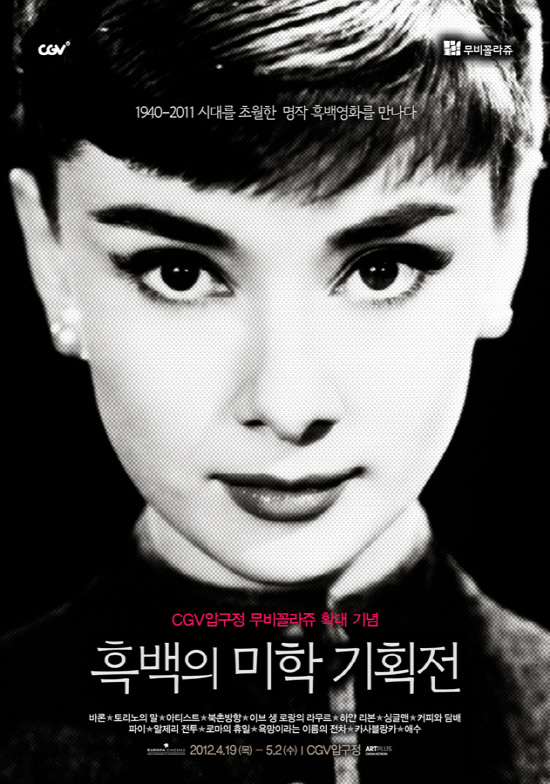 CGV 측은 CGV압구정 무비꼴라쥬의 1개관 추가 오픈을 기념해 오는 19일부터 '흑백의 미학' 기획전을 개최하면서 '토리노의 말', '로마의 휴일' 등 14편의 상영작에 대한 기대평을 댓글로 남기고 영화를 예매한 고객 중 5명을 추첨해 CGV영화관람권(1인 2매)을 증정한다. 또 댓글을 남긴 후 기획전의 각기 다른 영화를 가장 많이 관람한 고객 1명을 선정해 무비꼴라쥬 영화를 10회 무료 관람할 수 있는 무비꼴라쥬 패스카드(1장)와 '흑백의 미학' 기획전 기념품 세트를 제공한다.