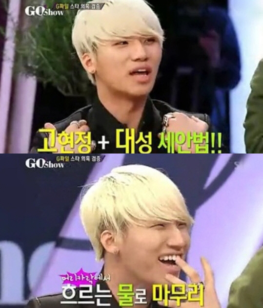 20일 방송된 SBS '고쇼'에 출연한 대성은 "고현정 선배님이 아니었으면 방송을 하지 못했을 것"이라며 고현정 세안법을 실천하고 있다고 밝혔다. 그는 "내 손은 항상 더럽다고 생각해야 한다. 내 손이니까 괜찮다고 생각하면 안된다. 나도 방송에서 만지는 척을 하지 실제로 만지지 않는다. 샤워를 할 때도 손을 1~2분 동안 씻고 얼굴을 씻을 땐 결의 반대방향으로 씻어줘야 한다. 클렌징을 할 때는 자극을 주기 때문에 두 세 번 한다고 좋은게 아니라 한 번 할 때 꼼꼼히 해주는게 좋다"고 밝혔다. 이어 "샤워기 물도 얼굴에 바로 맞으면 안된다. 머리에 맞아서 흐르는 물로 얼굴을 씻어내야 한다. 영화를 찍는 것 같은 느낌이 든다는 장점이 있다"고 덧붙였다.