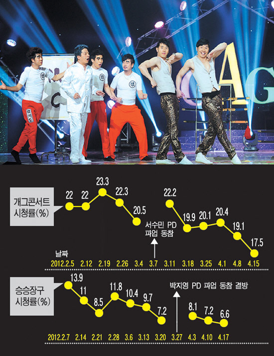 '승승장구' 역시 마찬가지다. '승승장구'의 박지영 PD도 "실내에서 촬영하는 프로그램이라 섭외만 돼 있으면 제작이 가능하다. 내가 없다는 것은 단지 결정권자가 빠진 것이다"라며 "파행과 정상방송은 보는 이의 입장에 따라 다른 것 같다. 우리가 보기에는 정상방송이 아니다. 하지만 시청자가 볼 때는 괜찮을 수 있다"고 말한 바 있다. 하지만 시청자가 보기에도 정상방송이 아니었나 보다. 지난 3월 초 10%를 넘었던 시청률은 지난 17일 6.6%까지 떨어졌다. 메인 PD가 있는 상황에서 이런 시청률이 나왔다면 '문책'감이다.