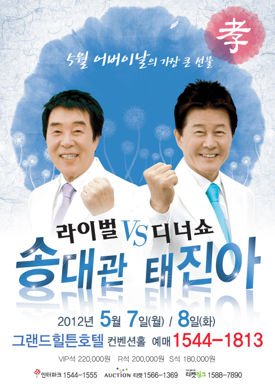 지난 연말 송대관-태진아 라이벌 디너쇼는 부모님께 선물하려는 자녀들과 기업들의 고객 선물 1순위 공연으로 주목받으며 조기에 매진되는 저력을 보여준 바 있다.