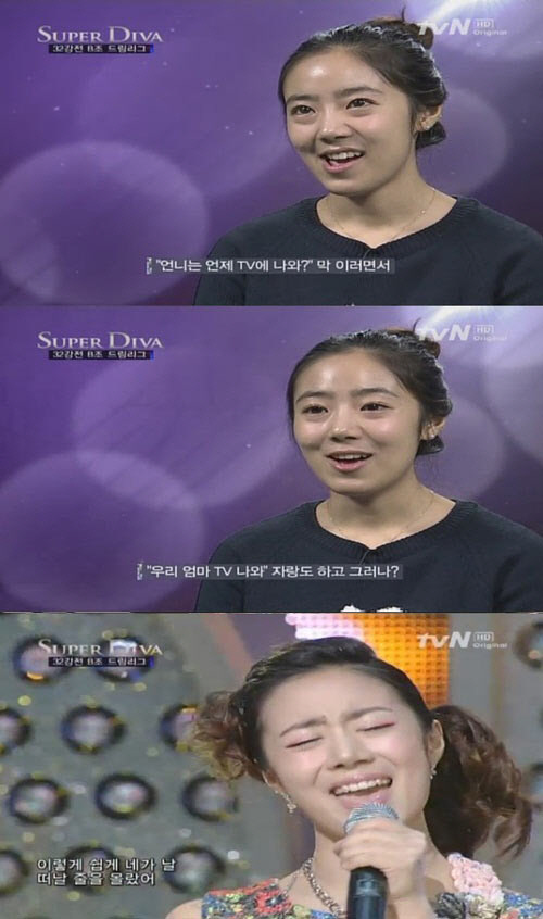 지난 28일 방송된 tvN 주부 노래 오디션 '슈퍼디바 2012' 8회 32강전 드림리그에서는 조별 대결이 펼쳐진 가운데 양성연이 김건모의 '핑계'를 열창해 눈길을 끌었다.