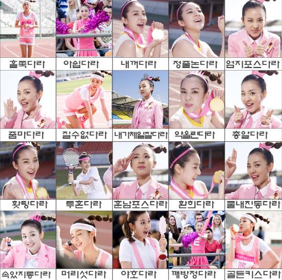 산다라박은 지난 26일과 27일 "짜쟌~!!! 예전에 미스탠저린 버젼 백다라 기억하나요렜다 자~ 왔습니다~ 백다라 제2탄! 올림픽버젼 백다라 빠밤!!!" 이라는 글과 함께 사진 두 장을 게재했다.