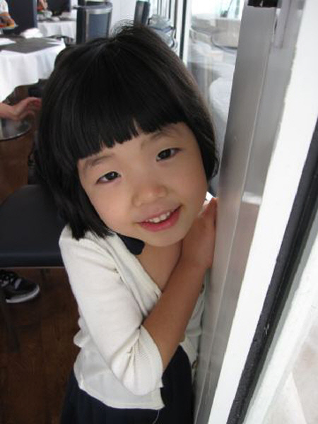 사진에는 션- 정혜영 부부의 첫째 딸 하음 양이 천진난만한 미소를 지으며 카메라를 응시하고 있는 모습이 담겨 있다. 단발머리에 깜찍한 일자 앞머리를 한 하음 양은 올망졸망한 귀여운 이목구비로 깜찍한 매력을 발산했다.