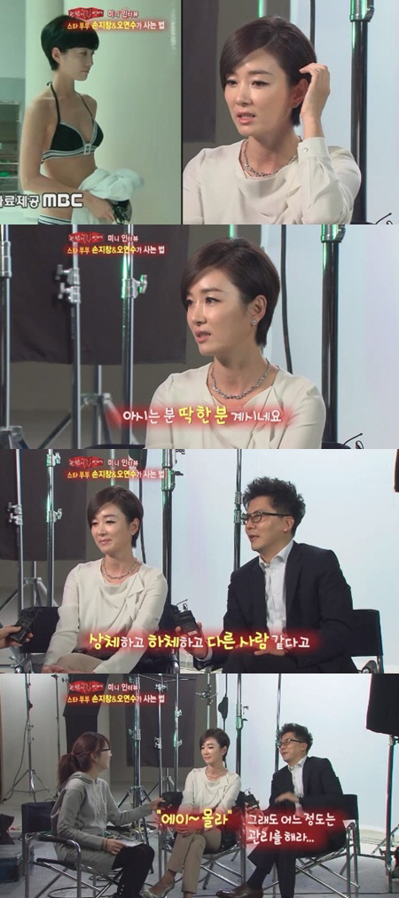 이에 손지창은 '네'라고 잘라 말한 뒤 "상체하고 하체하고 다른 사람 같다"고 돌발 발언을 했다. 이어 "그래도 어느 정도 관리 해야한다고 하니까 '에이~ 몰라' 하더라"고 덧붙였다.