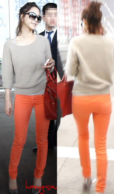 얼굴의 반을 차지하는 커다란 선글라스에 베이지색 니트를 착용한 한예슬은 각선미가 그대로 드러나는 주황색 스키니 진을 입고 몸매를 뽐냈다. 작은 얼굴과 긴 팔다리로 우월한 비율을 자랑한 한예슬은 가냘프지만 섹시한 애플힙이 돋보이는 뒤태를 자랑하며 완벽한 바디라인을 자랑해 감탄을 자아냈다.