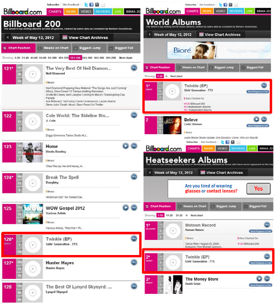 소녀시대의 유닛인 소녀시대-태티서가 미니 앨범 '트윙클(Twinkle)'로 미국 빌보드 메인 앨범 차트인 '빌보드 200'에서 한국 가수 사상 최고 순위를 기록했다.