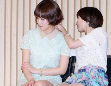 이 사진은 지난 달 열린 '맛있는 인생' 제작발표회 현장 사진으로, 사진 속 류현경은 상큼한 뱅 헤어스타일의 단발머리에 봄 내음이 물씬 풍기는 민트색 원피스 차림을 한 채 측면을 바라보고 있다. 옆에 앉은 유다인이 옷매무새를 정리해 주는 다정한 모습이 담겨 있다.