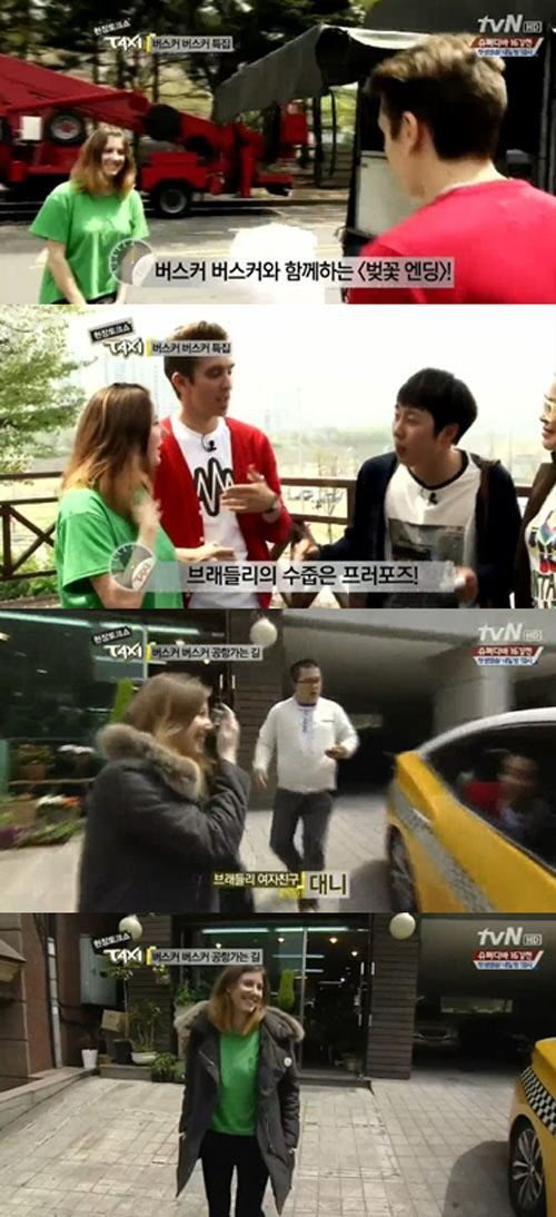금발에 뛰어난 미모를 소유한 브래들리의 여자 친구 대니는 브래들리에게 사랑스러운 눈빛을 보내며 처음 만난 MC 이영자에게 환한 미소를 지어 보여 시선을 모았다.