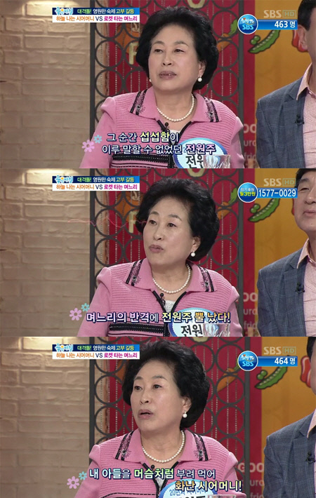 이에 조민희는 "뭐가 그렇게 섭섭하시냐. 음식을 가져가면 며느리만 먹는 게 아니라 아들도 다 먹는다"며 응수했다.