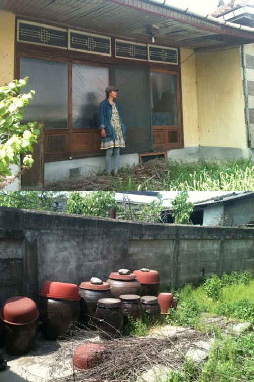 또 다른 사진에는 시골 분위기가 물씬 나는 장독대들과 담장, 무성하게 자라난 푸르른 풀들이 어우러져 있어 시선을 모은다.