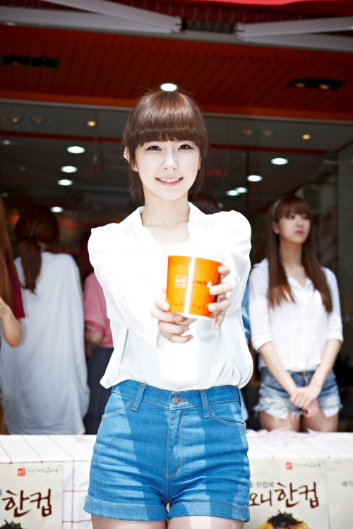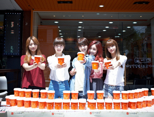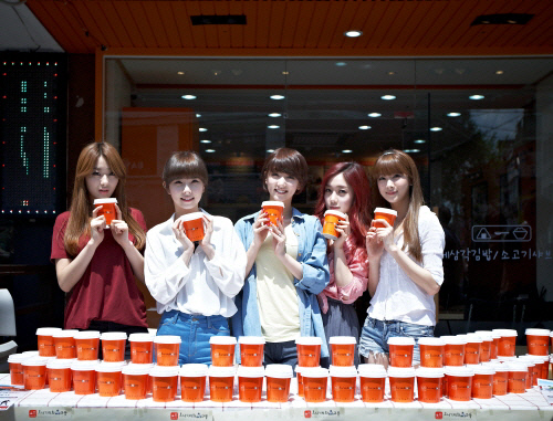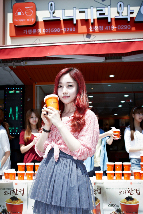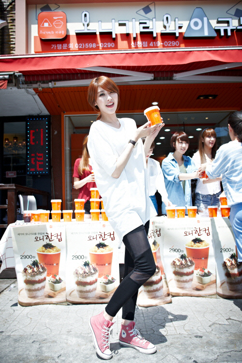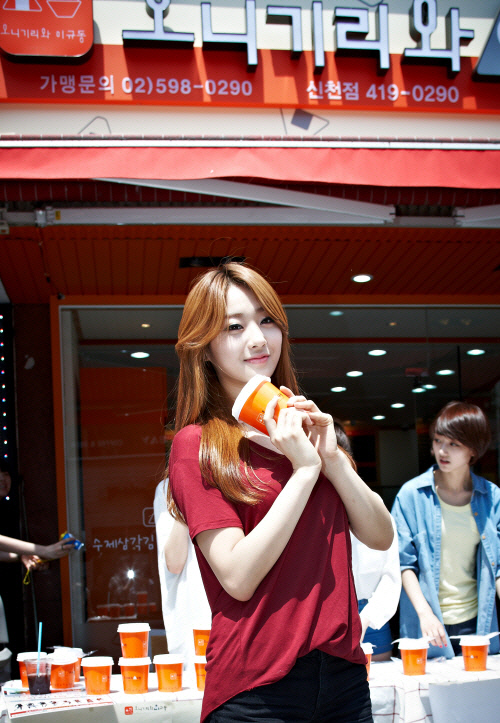 한컵나눔 행사는 컵밥을 사람들에게 직접 나눠주고, 수익금을 기부하는 이벤트다. 나인뮤지스는 3일 오니기리와이규동 신천점에서 열린 한컵나눔 행사에 참여, 매장에서 주문을 받고 청소와 요리를 하는 등 아르바이트를 했다. 무대 위 카리스마 넘치는 모습과는 달리 내추럴한 사복을 차려입은 이들은 200여 개의 컵밥을 직접 만들었음은 물론 무더운 날씨에도 손님몰이를 위해 길거리 홍보도 자처했다.