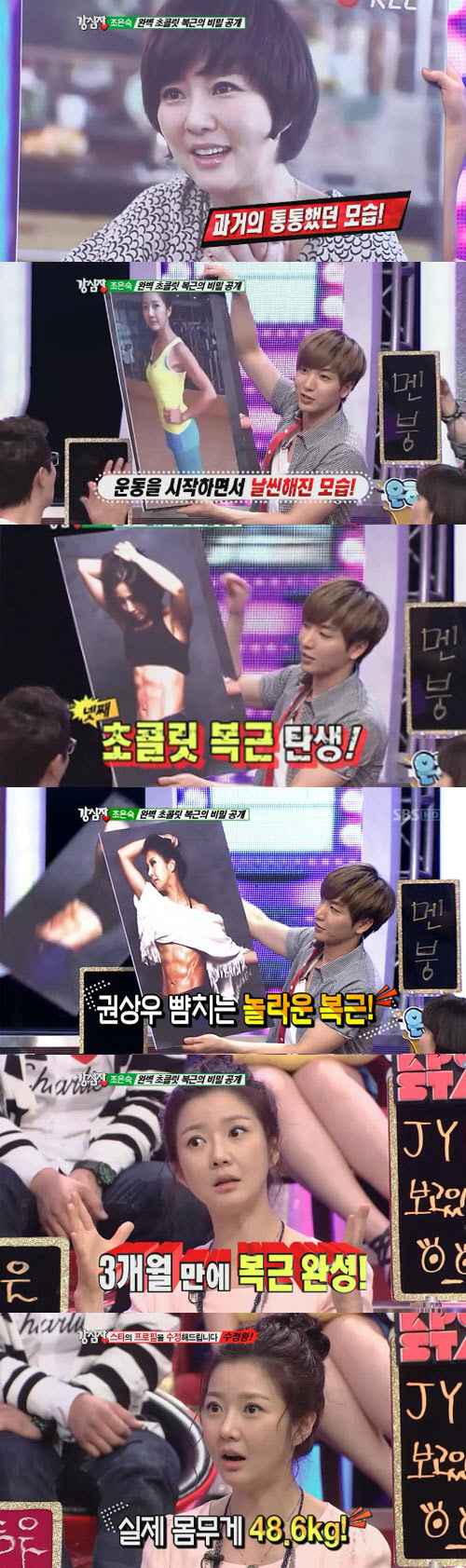 배우 조은숙의 명품 복근 공개에 '강심장'이 초토화 됐다.