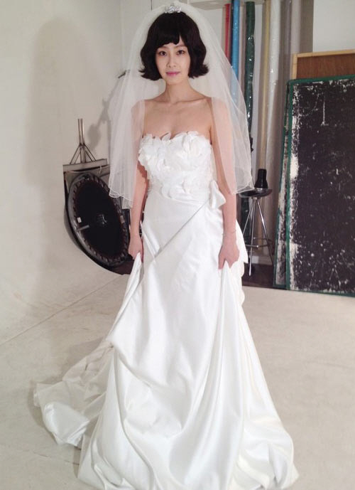 배우 홍수현이 웨딩드레스를 입고 '볼륨몸매'를 과시했다.