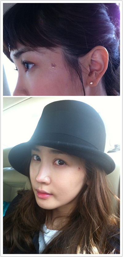 공개된 사진에서 이다해는 눈 옆쪽에 작게 화상을 입은 모습. 상처 자체는 작아 보이지만 잡티 없이 깨끗한 이다해의 피부에 도드라지게 난 화상 상처가 안타까움을 자아낸다.