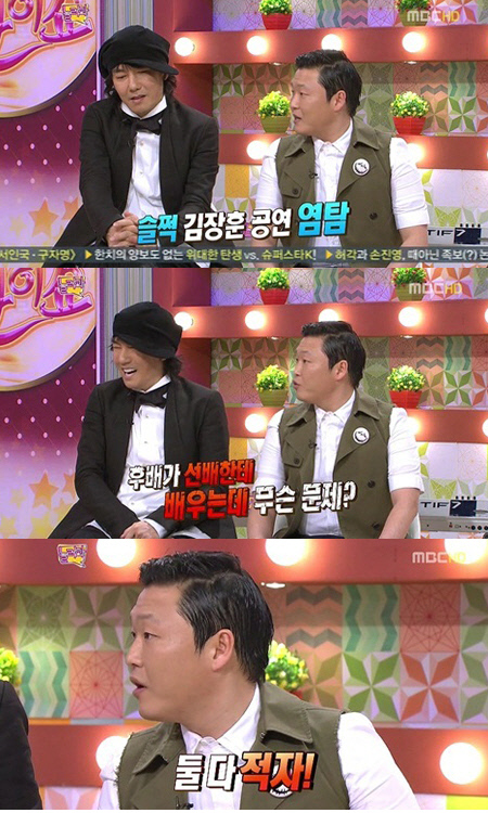 싸이는 "당시 나는 후배가 선배에게 배우는 게 무슨 문제냐고 되물었다"며 두 사람 사이에 공연 경쟁이 불붙게 된 계기를 전했다.