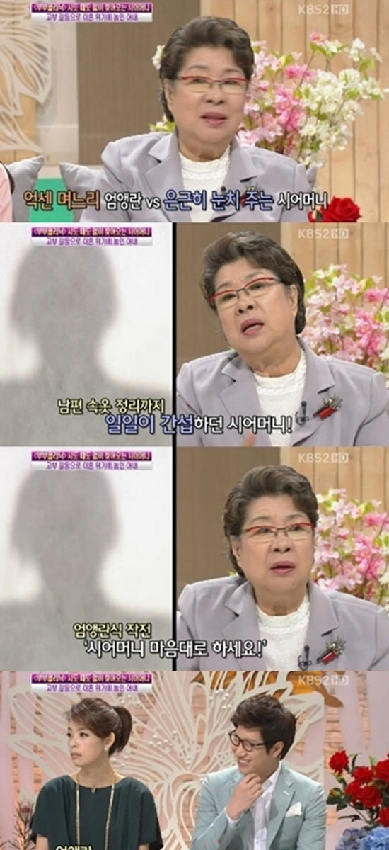 배우 엄앵란이 "시어머니가 남편(신성일)의 팬티까지 검사했다"며 심각한 고부갈등을 겪었음을 고백했다.