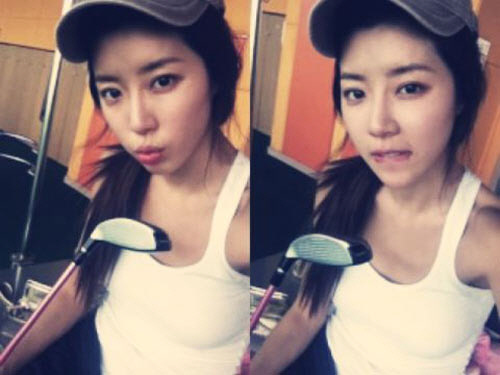 배우 박한별이 골프장에서 과감한 민소매 패션을 선보였다.