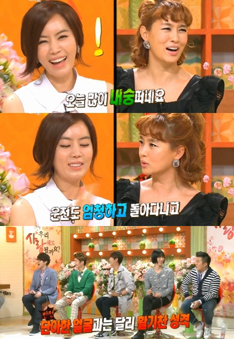 그러나 김유미와 친분이 두터운 MC 김원희가 "오늘 엄청 내숭 떤다. 김유미는 평소에 운전하면서 돌아다니는 걸 좋아한다. 단아한 외모와 달리 활기찬 성격"이라고 폭로해 김유미를 당황하게 했다.