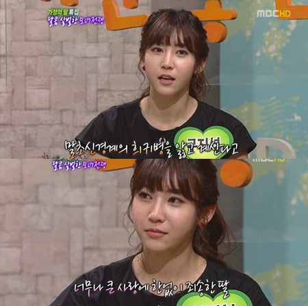 딸의 고백을 묵묵히 듣던 어머니는 "발끝부터 머리까지 마비되는 희귀한 병을 앓고 있다"며 "지성이는 내가 병원을 잘 가지 않으니까 속상해 하는 것 같다. 가족과 즐겁게 살고 싶다"고 말해 듣는 이들을 애잔하게 만들었으며 "항상 딸과 즐겁게 사는 덕분에 아직까진 심하진 않다"고 덧붙였다.