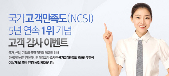 CGV는 국가고객만족도 조사(NCSI) 5년 연속 1위 수상을 기념해 고객감사 이벤트로 '멤버십 무료 시사회'와 '포인트 증정 퀴즈 이벤트'를 개최한다.