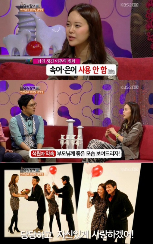 이어 "하지만 정석원을 만나면서 속어와 은어의 사용을 모두 끊었다"며 "'굉장히 많은'이라는 뜻의 속어를 '엄청, 많이'로 통일했다"며 언어 습관을 고치게 된 비법까지 공개했다.