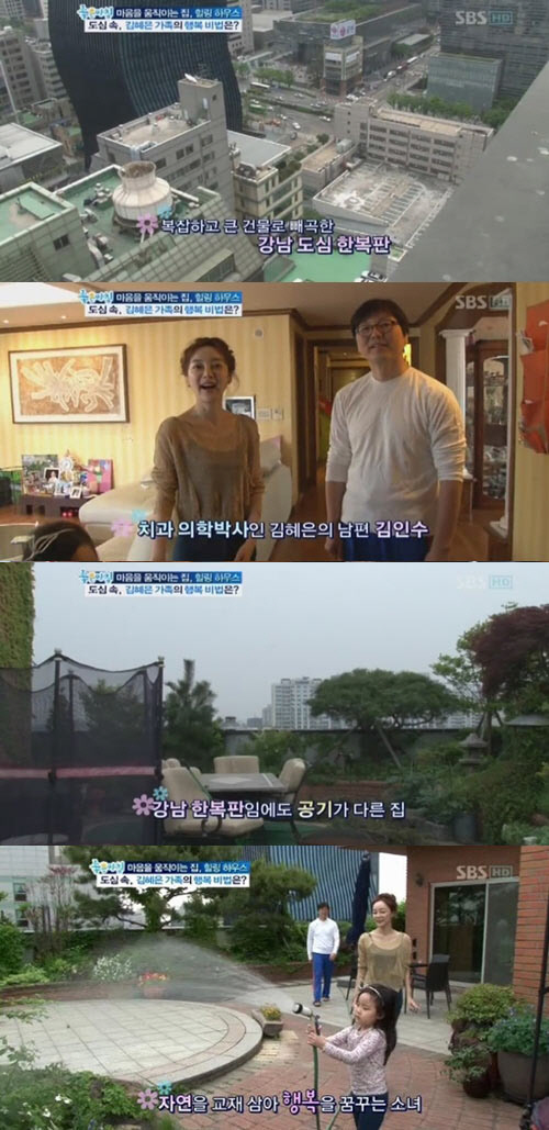 김혜은은 24일 오전 방송된 SBS '좋은아침'에 출연해 치과 의학박사인 남편 김인수 씨와 딸 가은 양과 함께 강남 도시 한복판에서 행복한 전원생활을 즐기고 있는 집을 공개했다.