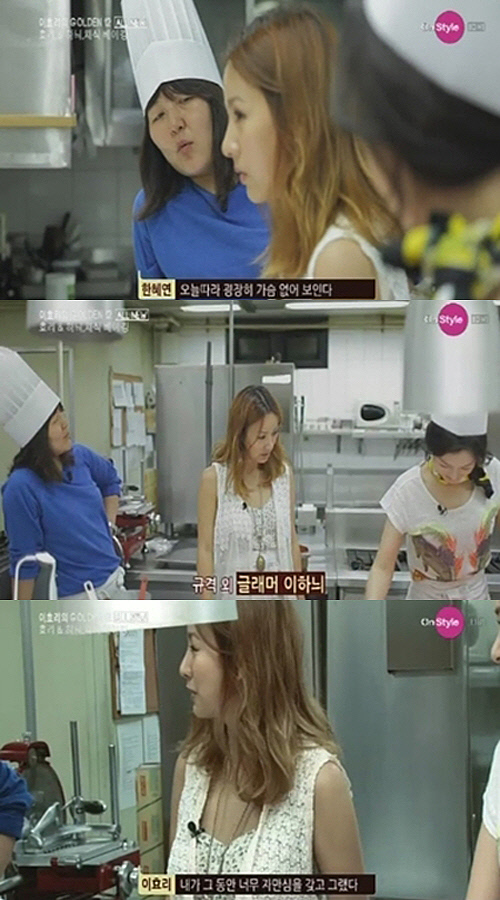요리를 배우던 중 한혜연은 이효리를 물끄러미 바라보며 "오늘 따라 굉장히 가슴이 없어 보인다"고 지적했다.