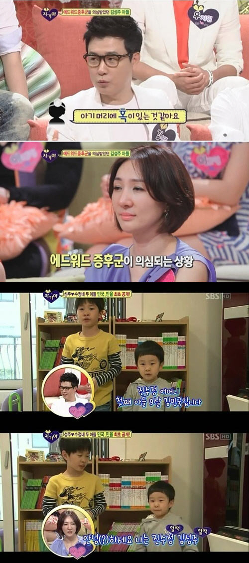 이날 방송에서 김성주는 "첫째 민국이를 임신해 5개월이 지났을 때 병원에서 아기 머리에 혹이 있는 것 같다며 에드워드 증후군이 의심된다고 했다"고 털어놔 놀라움을 샀다.