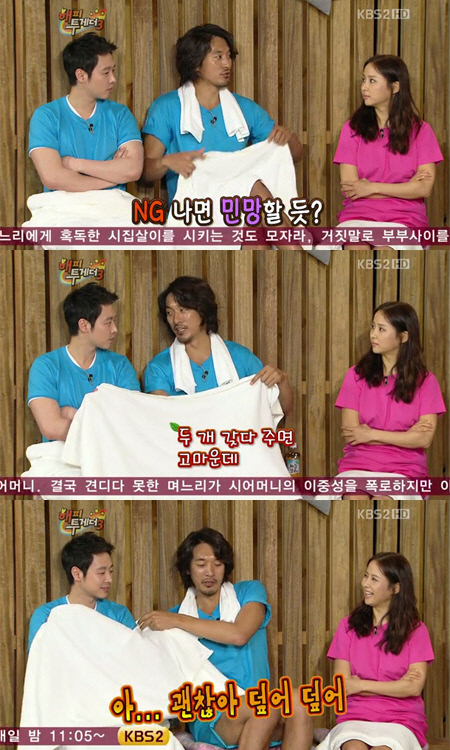 그는 "그러면 보통 남자가 희생할 때가 많은데 조여정이 '오빠도 같이 덮어'라고 말한 적이 있다"며 "그 때 '괜찮다. 혼자 덮어라'라고 말하며 괜히 민망해서 담요 밖으로 나왔다"고 털어놨다.