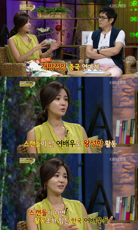 장서희는 26일 방송된 KBS 2TV '이야기쇼 두드림'에 출연해 한국과 중국 연예계의 다른 점에 대해 설명했다.