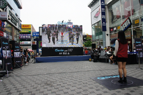 스마트폰 전용 음악서비스 '지니(Genie)'의 론칭을 기념하는 '지니 with EXO-K AR 영상쇼'는 국내 최초로 진행되는 가상현실 퍼포먼스 체험쇼로, EXO-K의 매력적인 모습과 퍼포먼스가 300인치 초대형 LED스크린을 통해 실제처럼 눈앞에 펼쳐져, 체험자가 마치 EXO-K와 한 공간에 있는 것처럼 느끼게 하는 흥미진진한 '증강현실(Augmented Reality)' 영상쇼다.