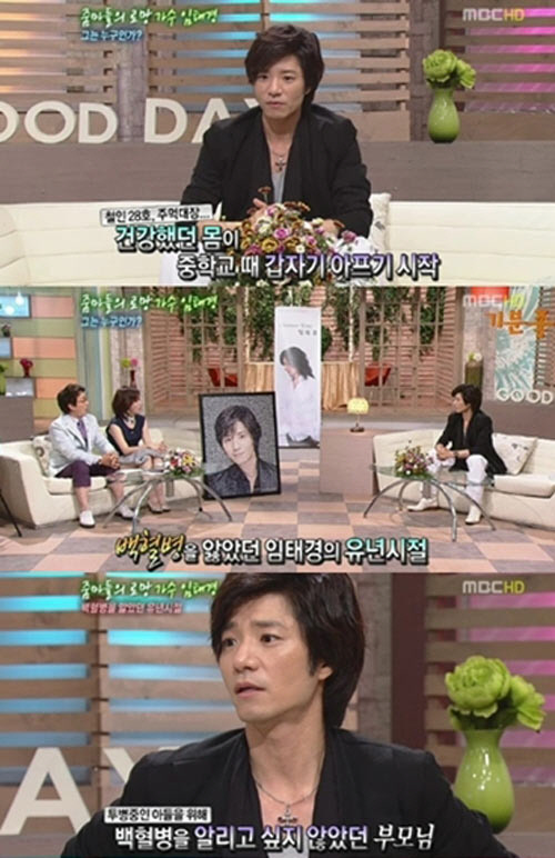 이어 임태경은 "투병 당시 부모님께서 '태경이에게 백혈병이라고 이야기 안 했으면 좋겠다'고 숨기셨다"며 "13살 때 백혈병 투병을 했지만 그때는 악성빈혈로 알고 있었고 28살이 됐을 때 내가 백혈병이었다는 사실을 알게 됐다"고 전했다.