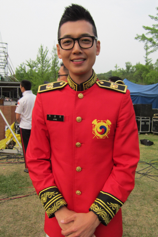 지난 2010년 11월 현역으로 입대한 정경호는 현재 3군 사령부 군악대 병장으로 충실히 군 생활을 하고 있으며 지난 30일 용인의 한 군부대에서 열린 음악회 행사에 MC로 나선 모습이 입대 후 처음 공개됐다.